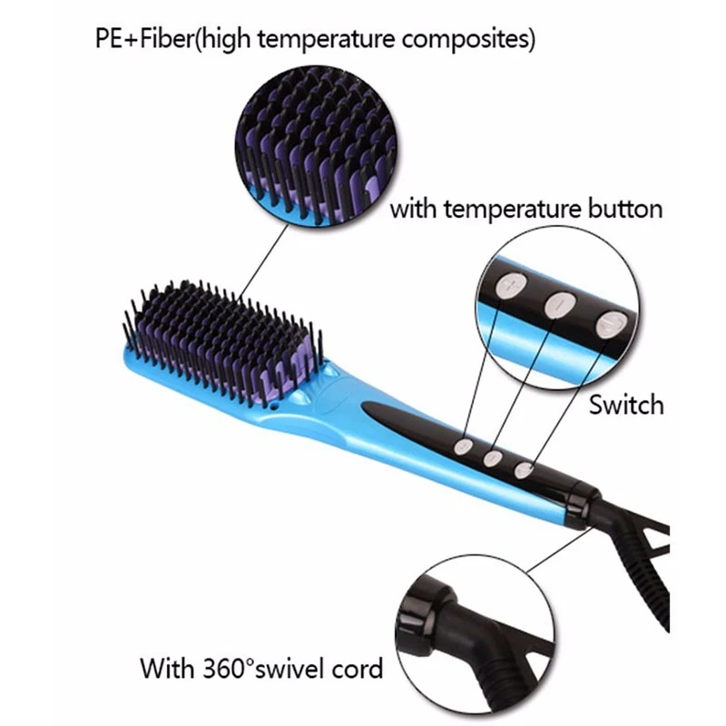 HOT Sale Enhanced Hair Straightener Brush 2-In-1 Ionic Straightening Brush With Anti-Scald Feature Auto Temp