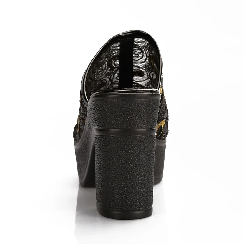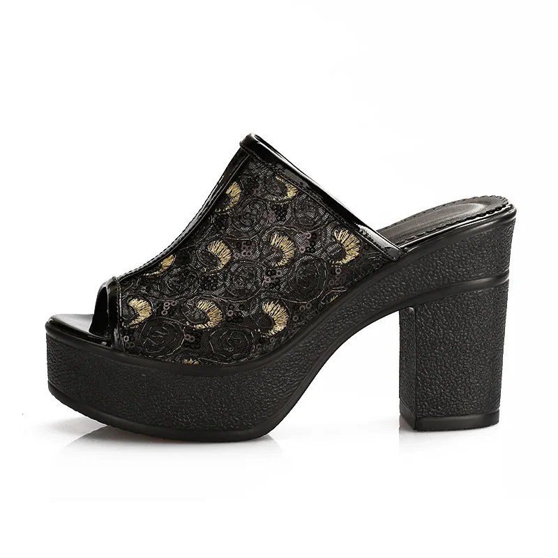 BEST FUN VILLE Golden silver shoes Summer Women Slipper Platform Heels High heels Outside Slippers Thick