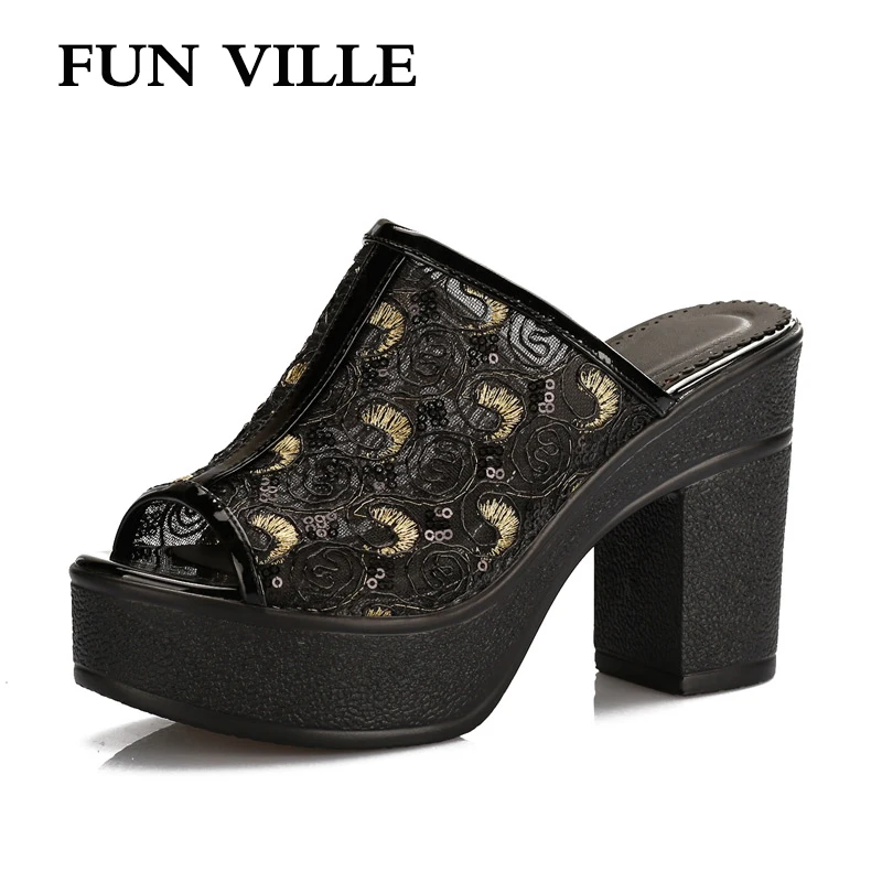 FUN VILLE Golden silver shoes Summer Women Slipper Platform Heels High heels Outside Slippers Thick