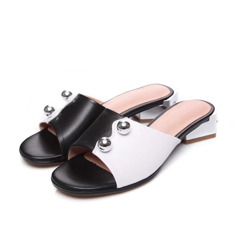 FUN VILLE Summer Women Slippers Genuine Leather women high heels shoes peep toe Outside female Slip