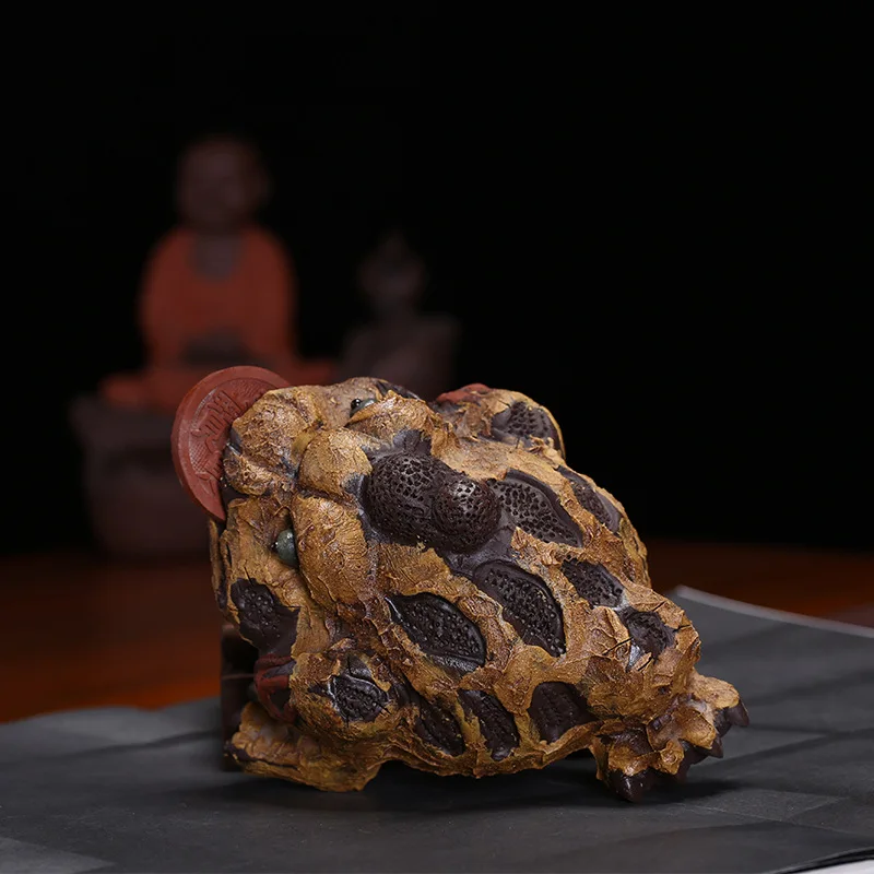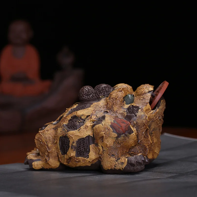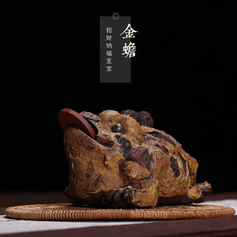 ORIGINAL Clay Tea Ornaments Bark Lucky Golden Toad Feng Shui Decoration Amulet Sculpture Batch Fun Large Siz